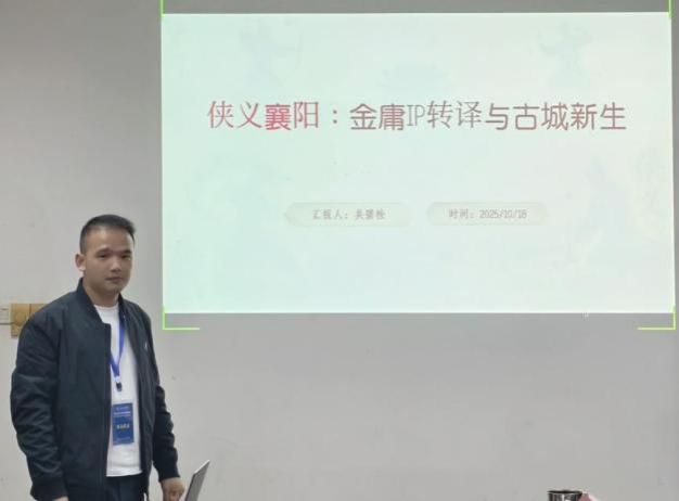 吴碧栓同学的“基于文化转译理论的襄阳古城‘侠义襄阳’形象塑造与传播研究”,重点探讨了金庸IP转译在城市形象塑造中的应用,以郭靖、黄蓉城市形象案例为切入点,分析了“侠义襄阳”文化品牌的构建路径和传播策略。研究为襄阳古城文化形象的创新表达提供了新思路。